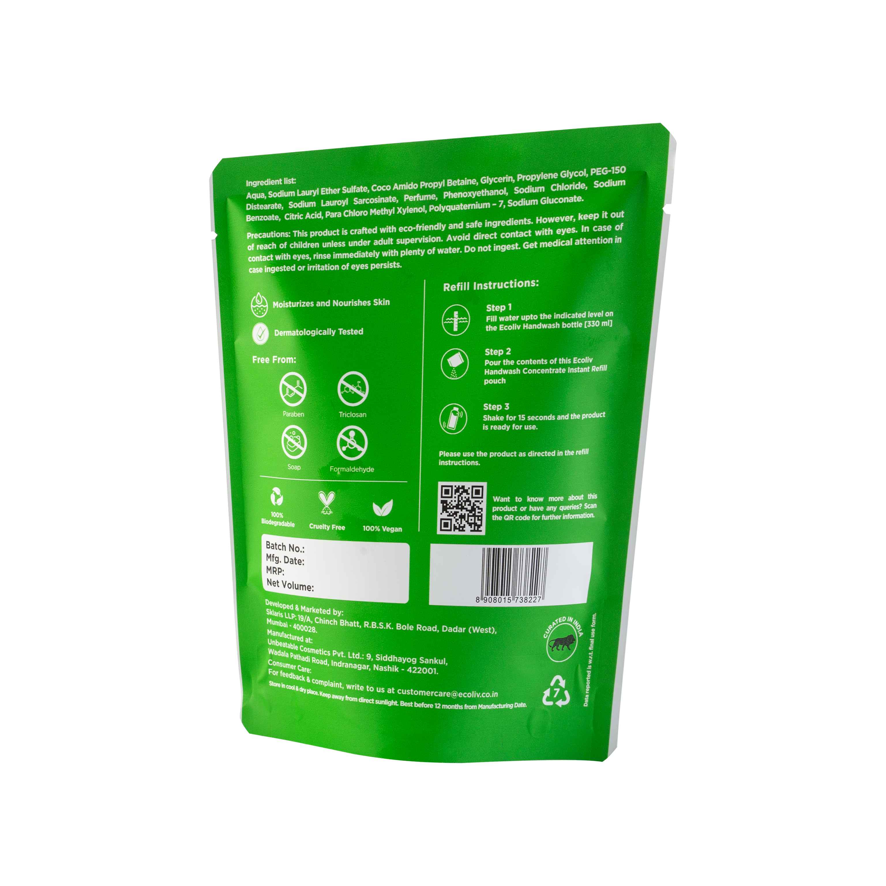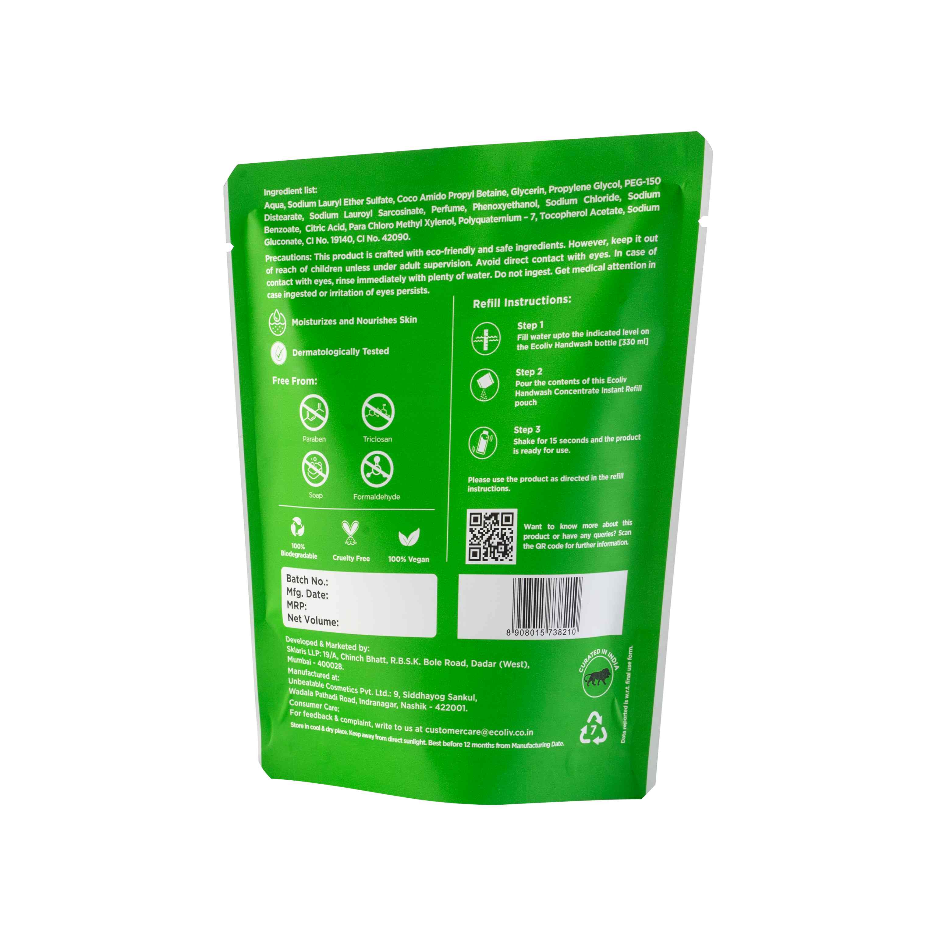Aloe Vera Handwash – Concentrate Refill Pouch (170 ml)
